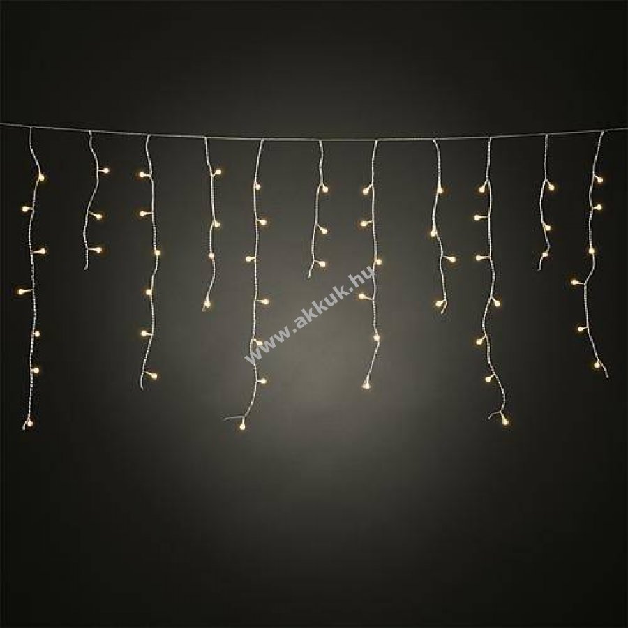 Konstsmide LED jégzápor fényfüggöny beltéri és kültéri használatra, 400 melegfehér gömb LED-del, átlátszó vezetékkel és foglalattal, 30V tápegységgel.