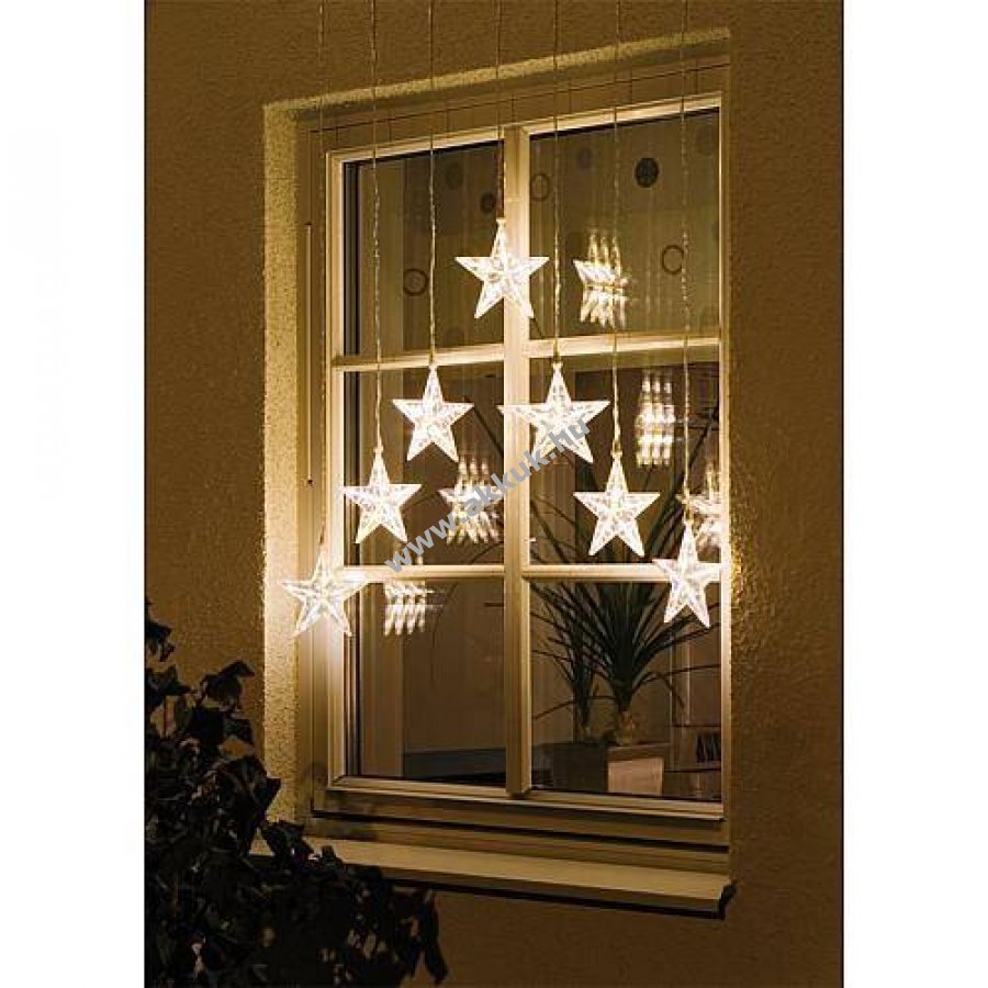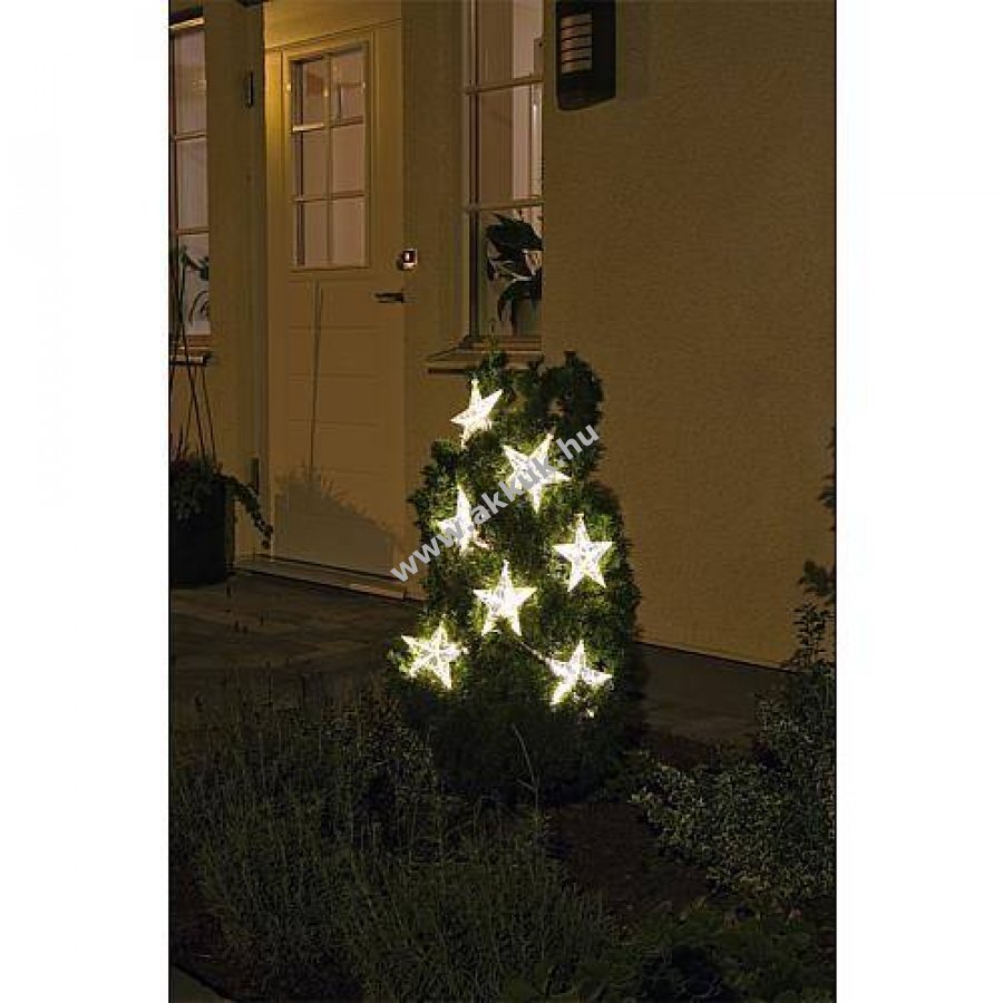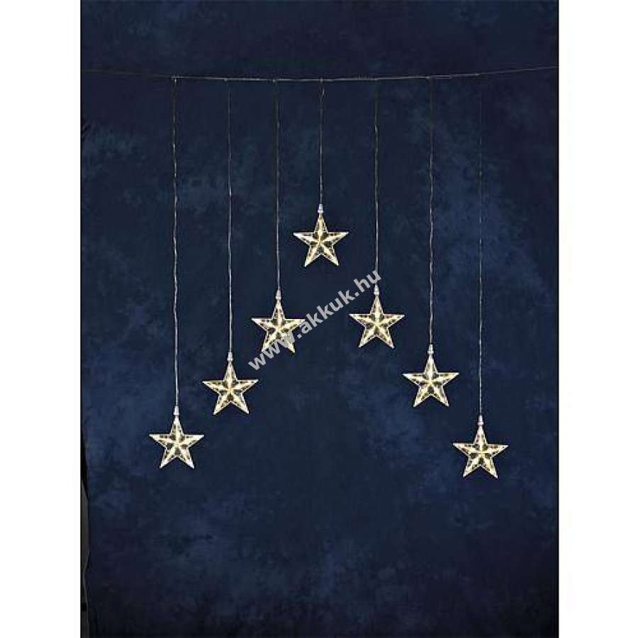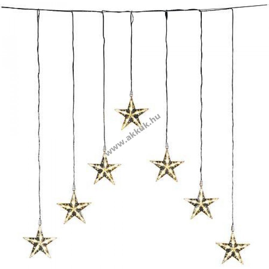 Konstsmide LED csillagfüggöny beltéri és kültéri használatra, 7 műanyag csillag O16cm, melegfehér világítás, 24V tápegységgel.