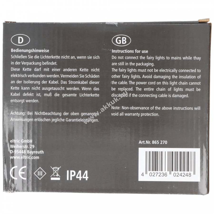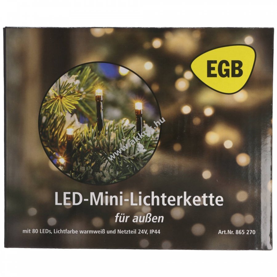 EGB LED mini fényfüzér 80 melegfehér LED-del, tápegységgel IP44 védettséggel beltéri és kültéri használatra.