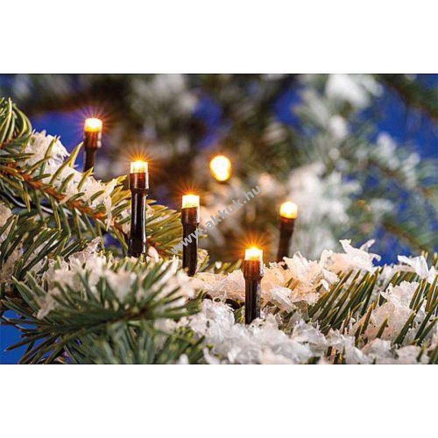 EGB LED mini fényfüzér beltéri és kültéri használatra, mikro-LED-ekkel és kapcsolós elemtartóval. Időzítő funkció: automatikus kikapcsolás 6 óra után, az utolsó bekapcsolás időpontjának megjegyzésével.