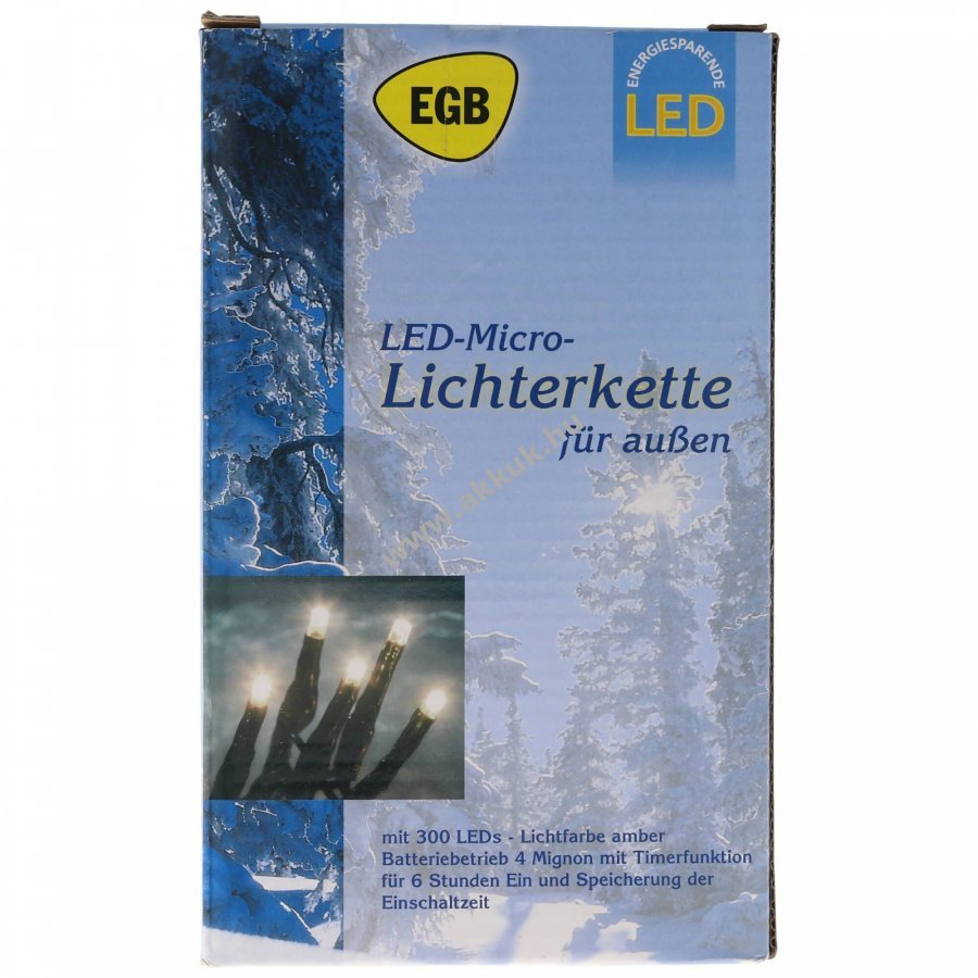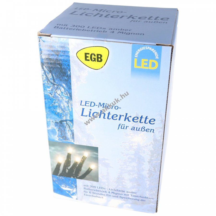 EGB LED mini fényfüzér beltéri és kültéri használatra mikro-LED-ekkel, elemtartó dobozzal és kapcsolóval. Időzítő automatikus kikapcsolással 6 órát követően és bekapcsolási idő tárolásával.