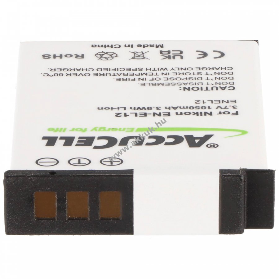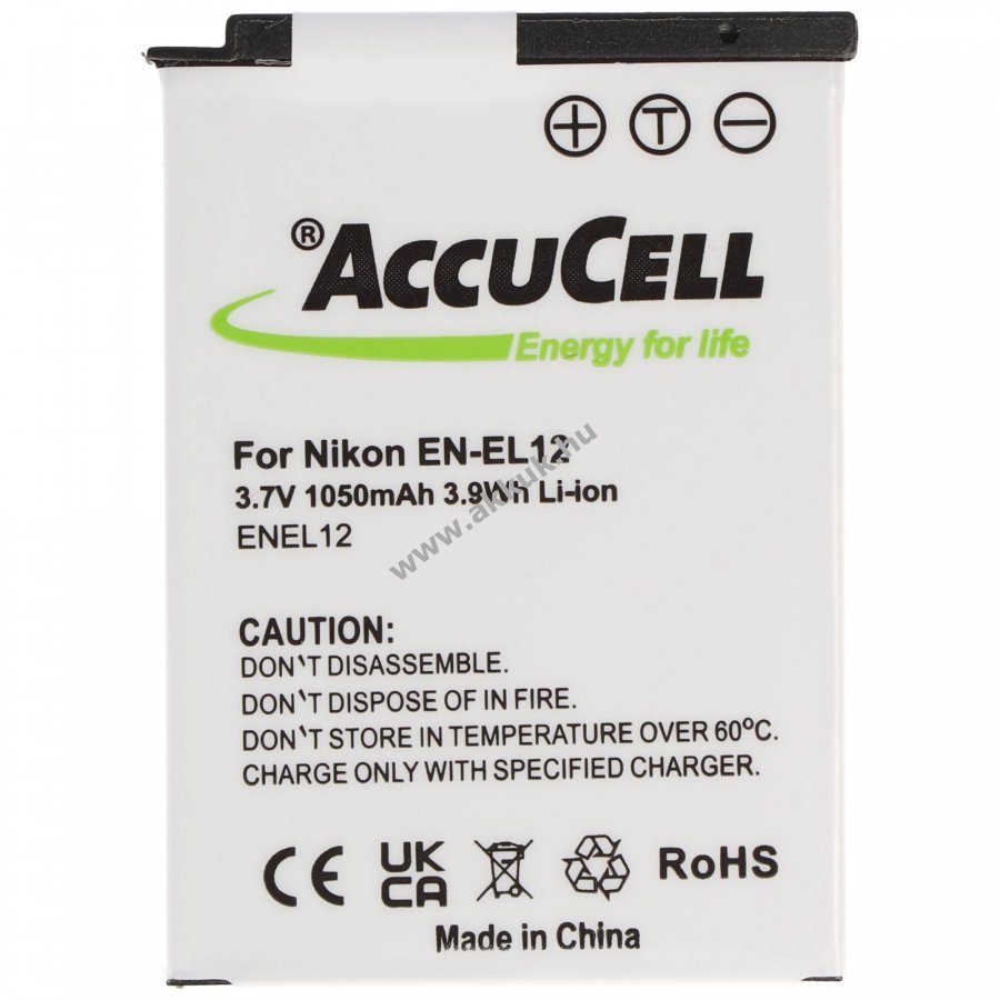 Helyettesítő Li-Ion akkumulátor Nikon EN-EL12 kompatibilis Coolpix fényképezőgépekhez, beépített védelmi elektronikával túlterhelés, túlmelegedés és rövidzárlat ellen.