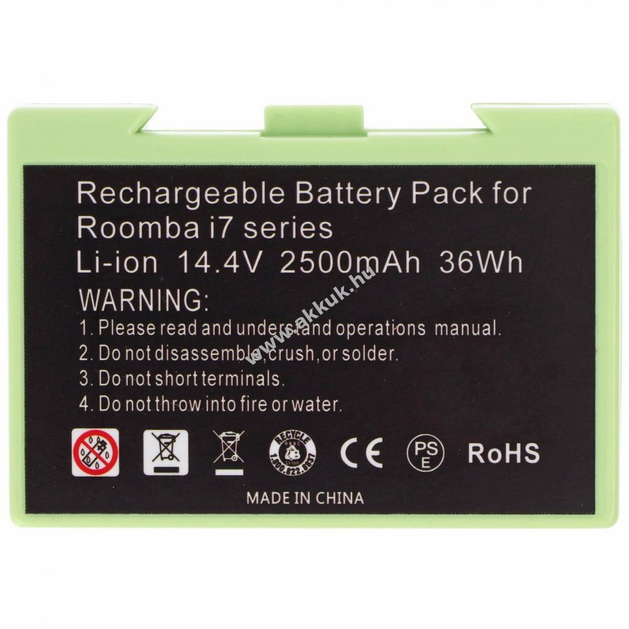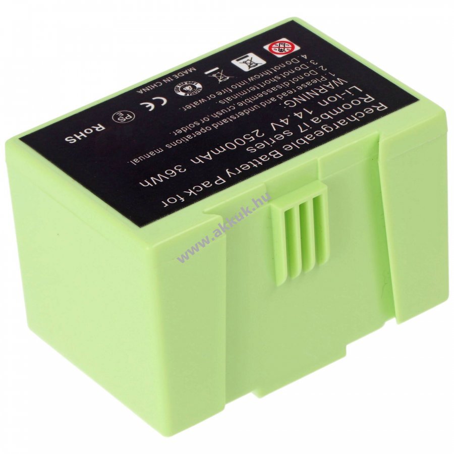 Kiváló minőségű, kompatibilis Li-Ion csereakkumulátor iRobot Roomba porszívókhoz. Magas kapacitás, alacsony önkisülés és nincs memóriahatás, CE és RoHS megfelelőség a megbízható működésért.