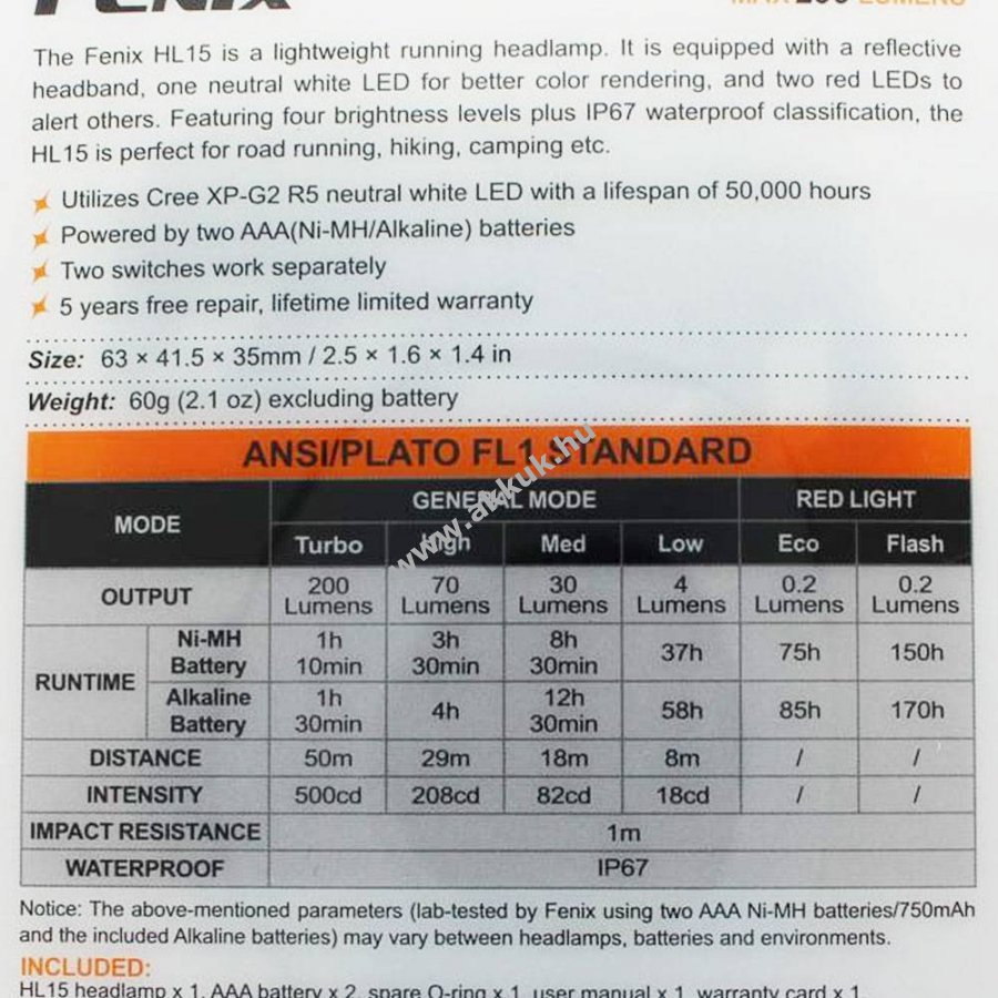 NiMH 63mm 60 gr. Fenix 1 év jótállás (további részletek)