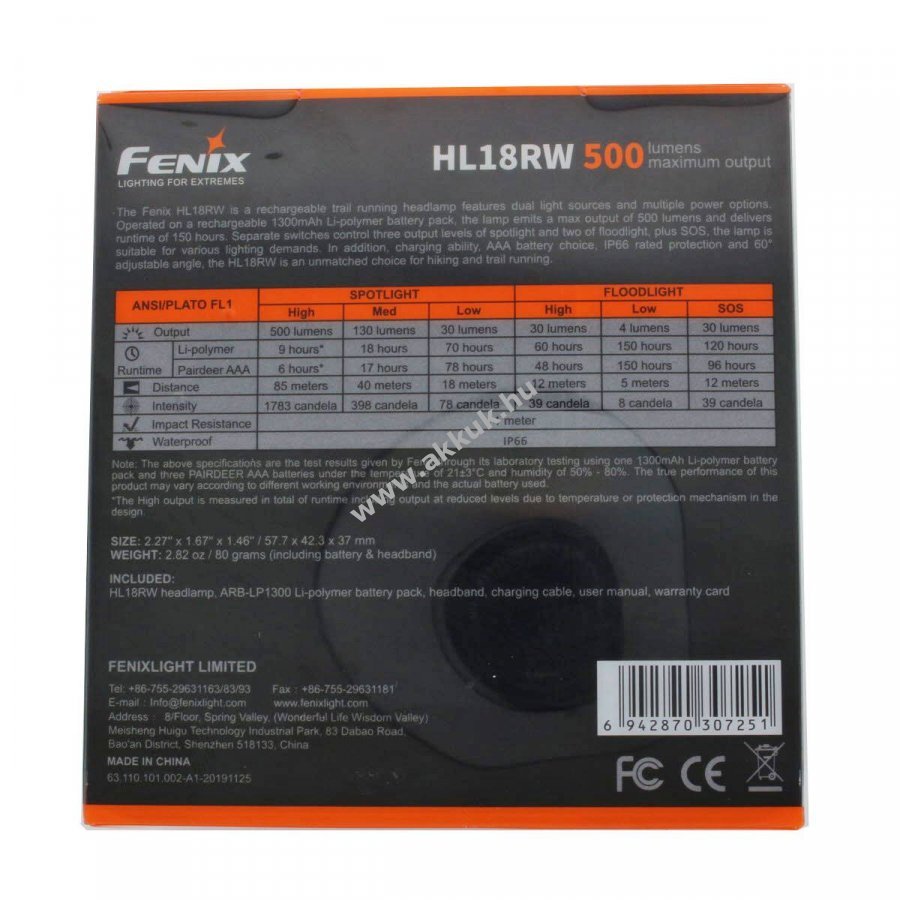 1300mAh LiPo 57.7mm x 42.3mm x 37mm 80 gr. Fenix 1 év jótállás (további részletek)