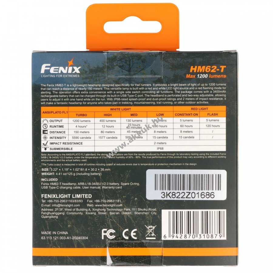Li-Ion 81.8mm x 30.2mm x 26mm 125 gr. Fenix 1 év jótállás (további részletek)