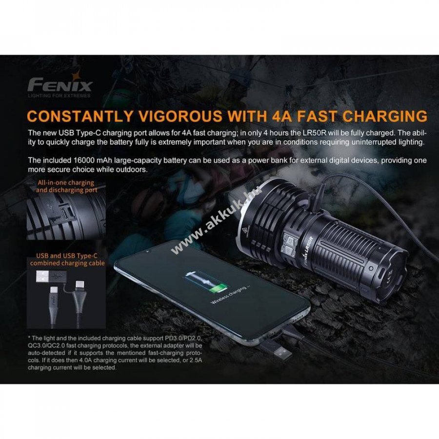 A Fenix LR50R a népszerű TK75 utóda: kompakt, nagy teljesítményű LED zseblámpa beépített ARB-L52-16000 akkupackkal.