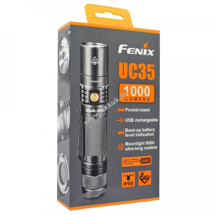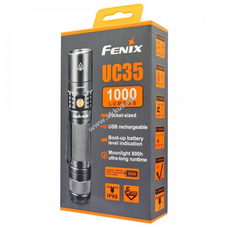 - Tartozékok: 1x Fenix UC35 V2.0, Fenix ARB-L18-3500 Li-Ion akku 3500mAh, USB kábel, tok, övcsipesz, csuklópánt, kapcsolófedél, pót O-gyűrűk