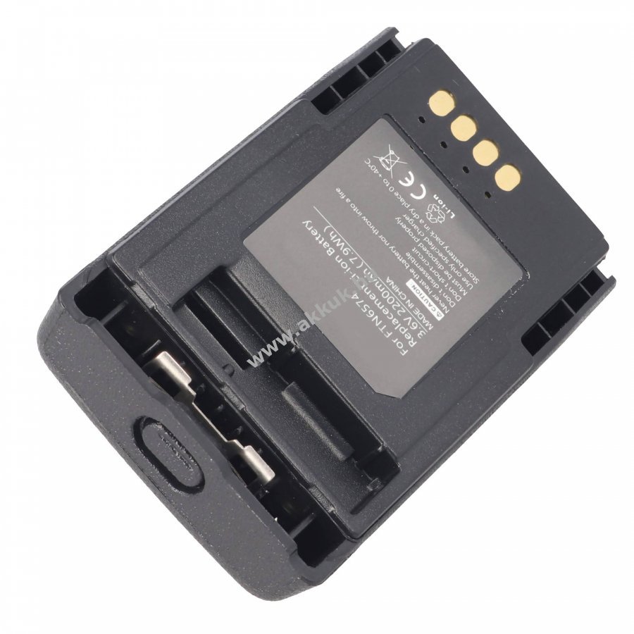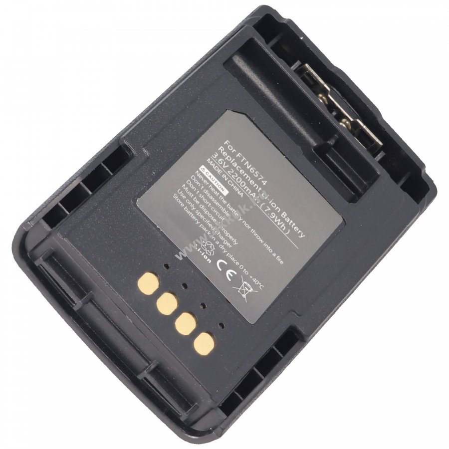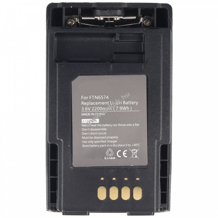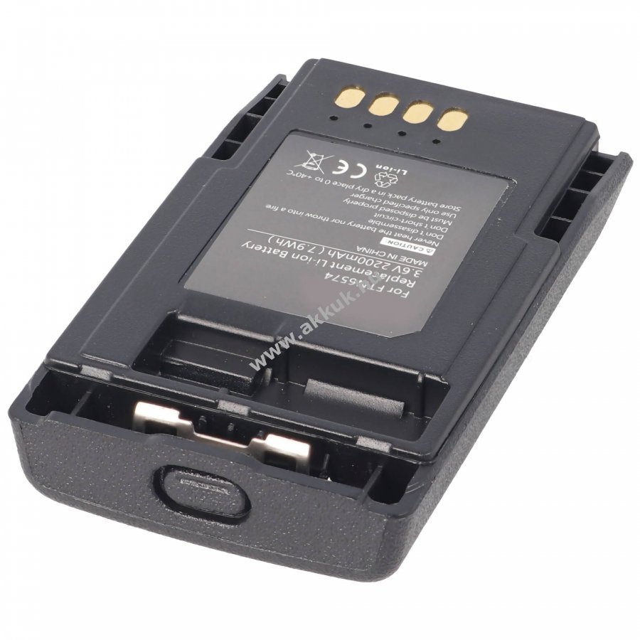 Minőségi Li-Ion akkumulátor Schutzelektronikával, kompatibilis a Motorola TETRA MTP850 rádióval és az FTN6574A akkumulátorral. Friss gyártású, nem eredeti Motorola termék. Töltés eredeti töltővel lehetséges. Feszültség 3,6-3,7V, kapacitás 2200mAh, méret 77,8x45,8x15,2 mm, súly 63 g.