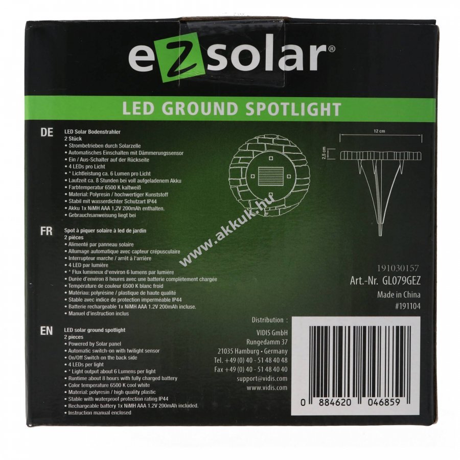 NiMH 12mm x 2.5mm ez solar Szavatosság (további részletek)