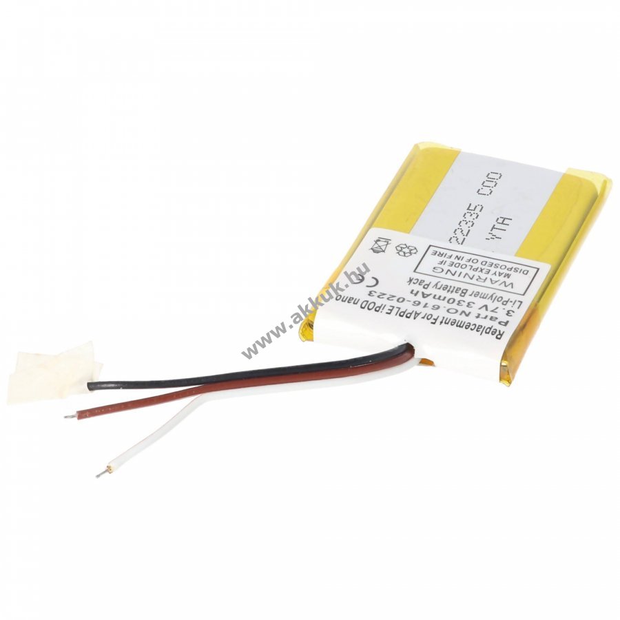 3.7V 330mAh/1.3Wh LiPo 40mm x 22mm x 4.1mm 7 gr. AccuCell Szavatosság (további részletek)