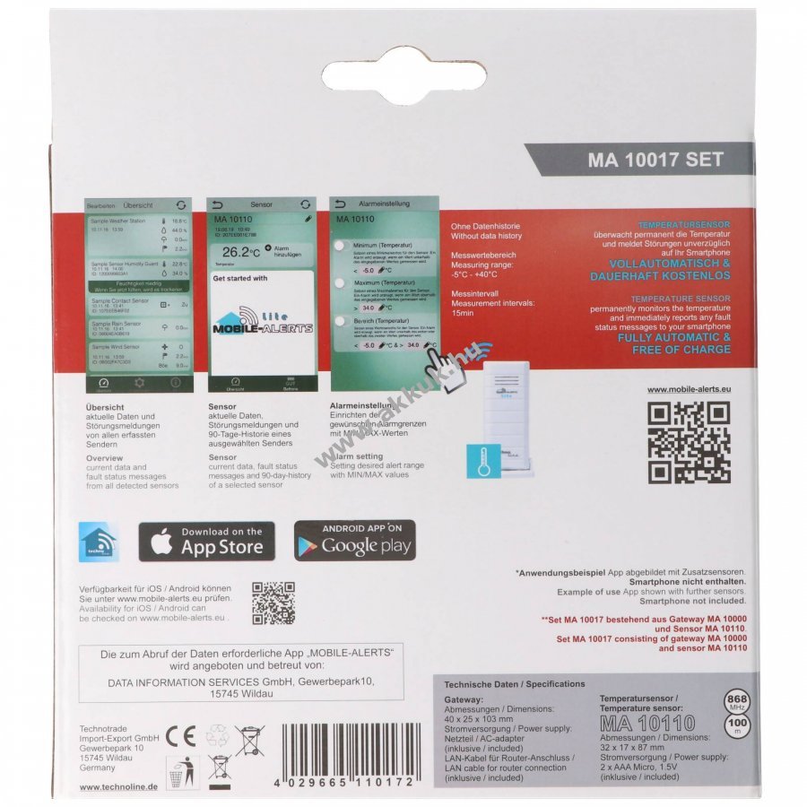 Technoline Mobile Alerts MA 10017 alapcsomag MA 10000 és MA 10110