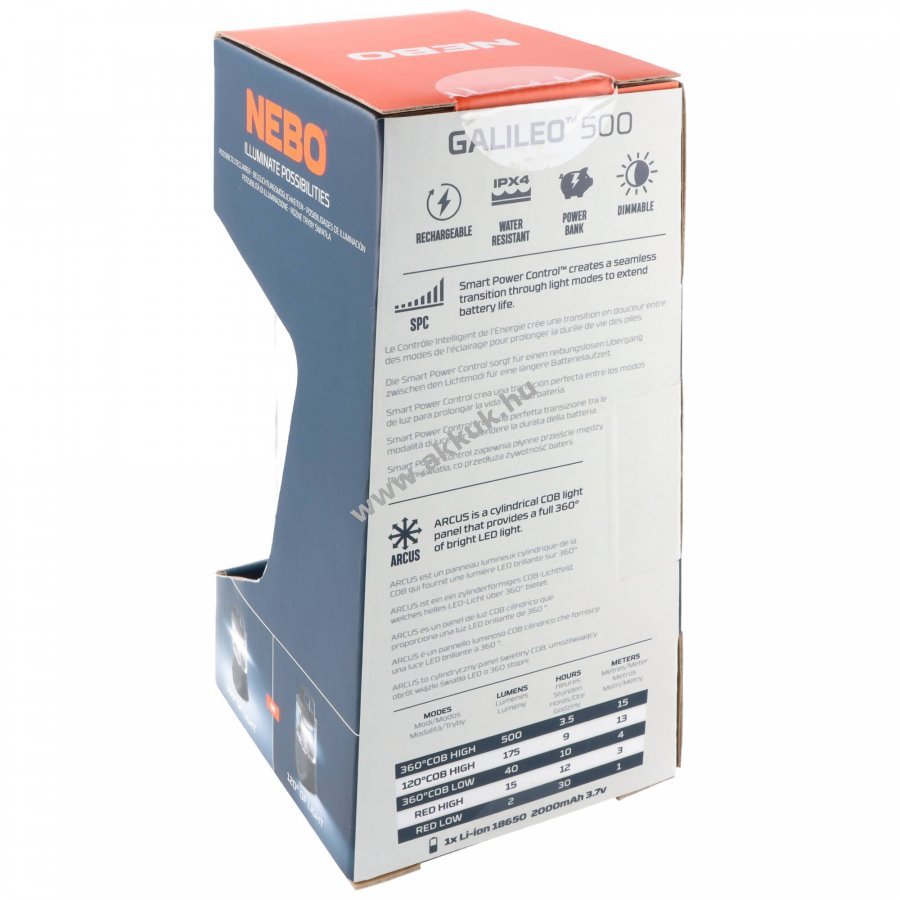NEBO GALILEOT 500 kempinglámpa 500 lumen USB újratölthető