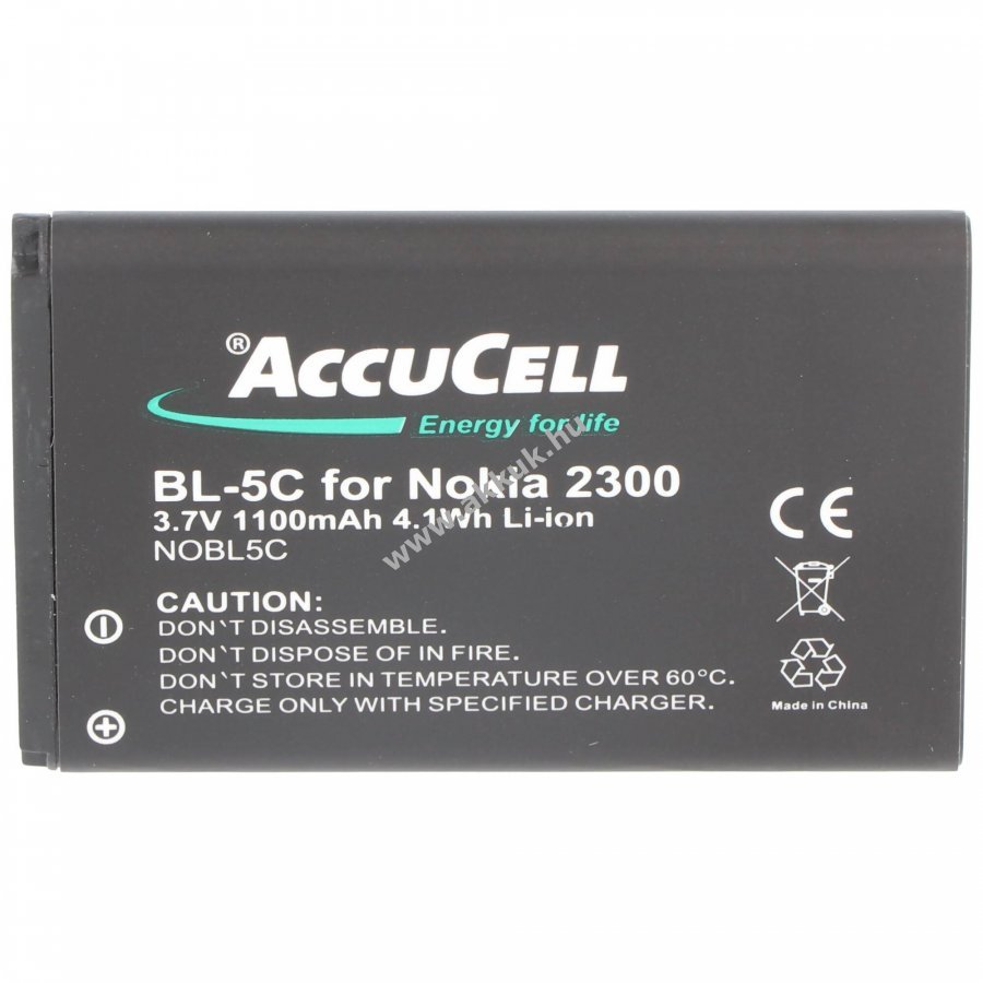 3.6V 1100mAh/4.1Wh Li-Ion 52.8mm x 33.45mm x 6.2mm 24 gr. AccuCell Szavatosság (további részletek)