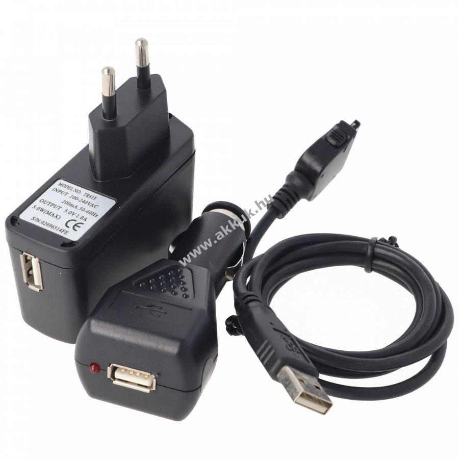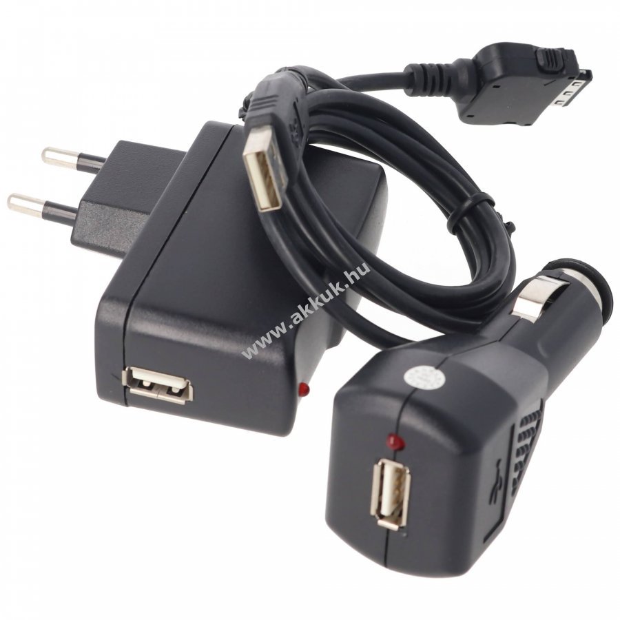 Nem eredeti, univerzális töltő- és szinkronizáló készlet Handspring Treo PDA-khoz, amely lehetővé teszi a készülék töltését és adatainak szinkronizálását otthon, szállodában vagy járműben.