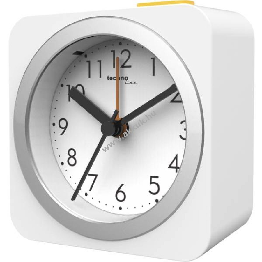 Technoline Modell B analóg kvarc ébresztő elegáns kialakítással és meleg, fehér háttérvilágítással.
