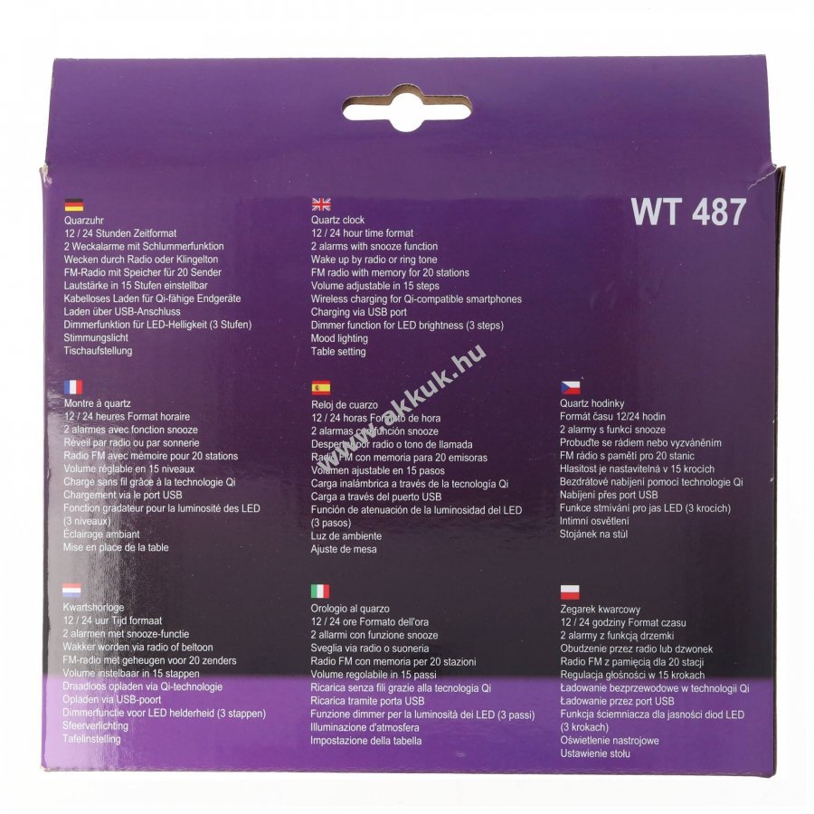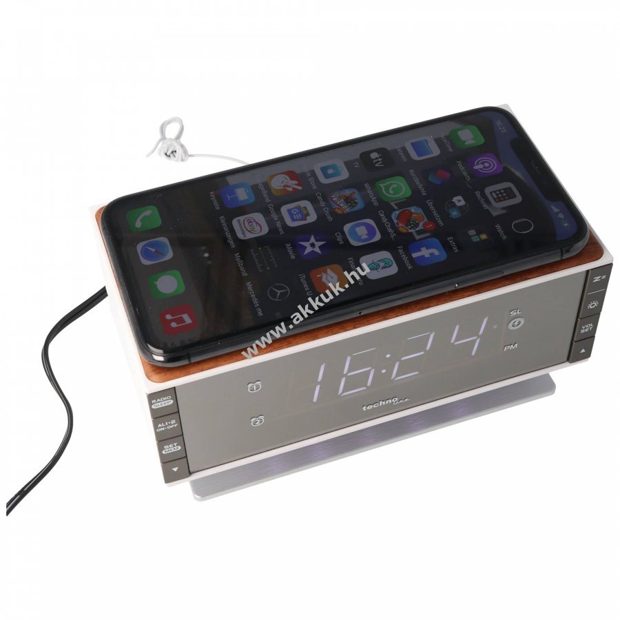 Modern WT487 rádiós ébresztőóra Qi vezeték nélküli töltéssel és tükörkijelzővel. Két ébresztés, szundi és 12/24h időformátum.