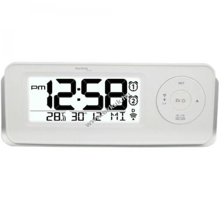 Technoline WT 498S DCF-77 rádiós ébresztőóra kézi beállítási lehetőséggel, 12/24 órás kijelzéssel, dátum- és napkijelzéssel (7 nyelv), beltéri hőmérséklet-kijelzéssel és háttérvilágítással.