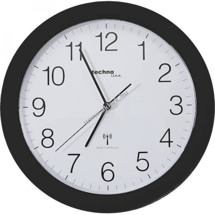 Technoline WT 8000 analóg rádióvezérelt falióra fekete műanyag kerettel, könnyen olvasható számlappal és pontos idővezérléssel.