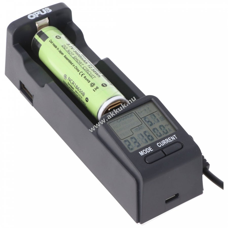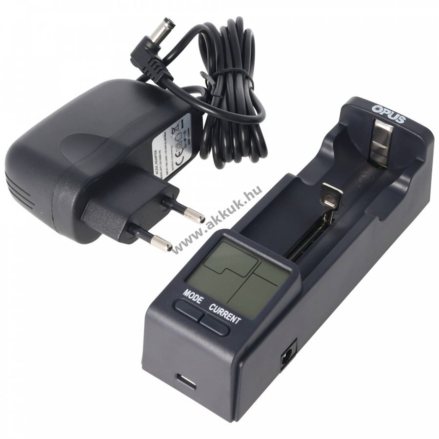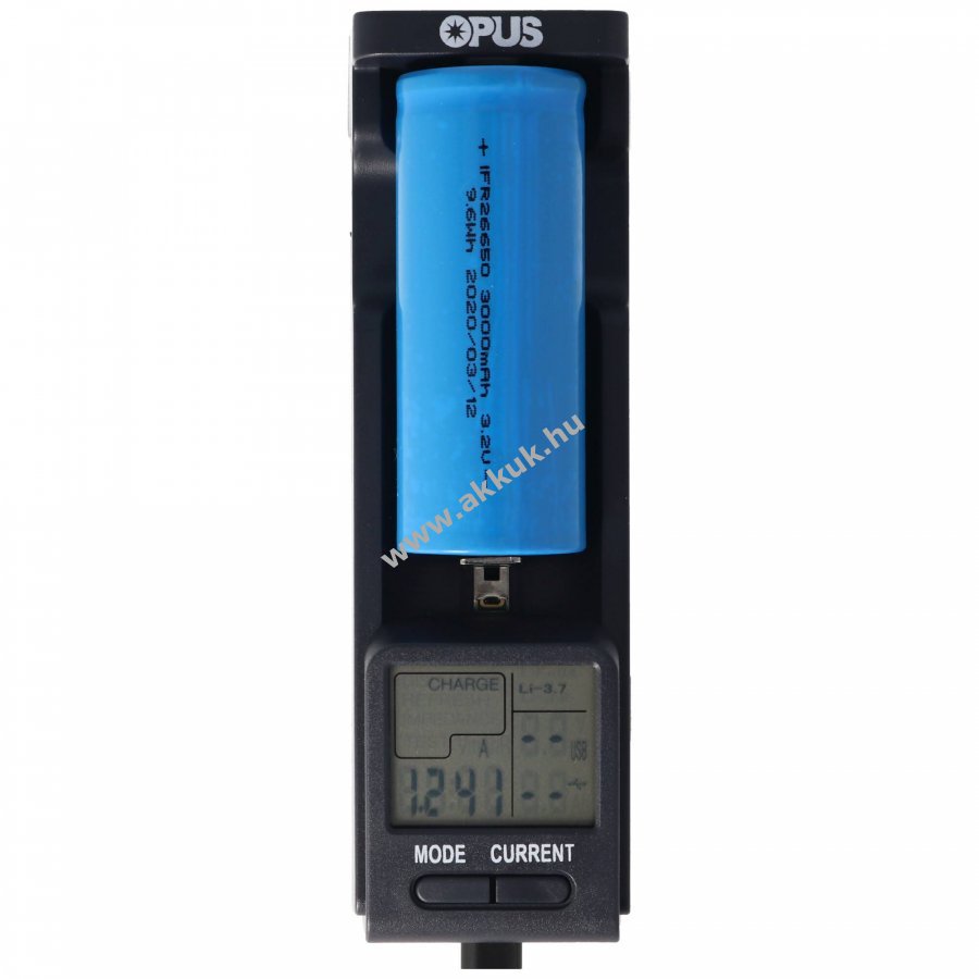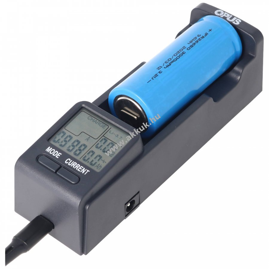 OPUS BT-C100 egyrekeszes gyorstöltő IFR/LiFePO4, Li-ion és NiMH akkumulátorok töltéséhez, kisütéséhez és elemanalíziséhez. FIGYELEM: a készüléknek nincs fordított polaritás elleni védelme, ezért mindig helyesen helyezze be az akkumulátort, ügyeljen a + és - pólusra.