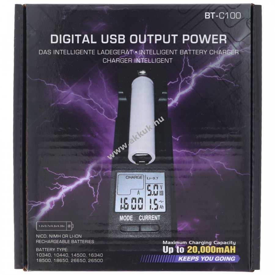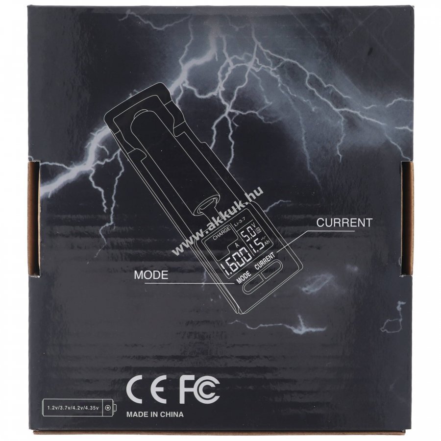 - Töltőáram beállítható: 0.2A-1.6A (Li-ion), NiMH/NiCd max. 2.0A