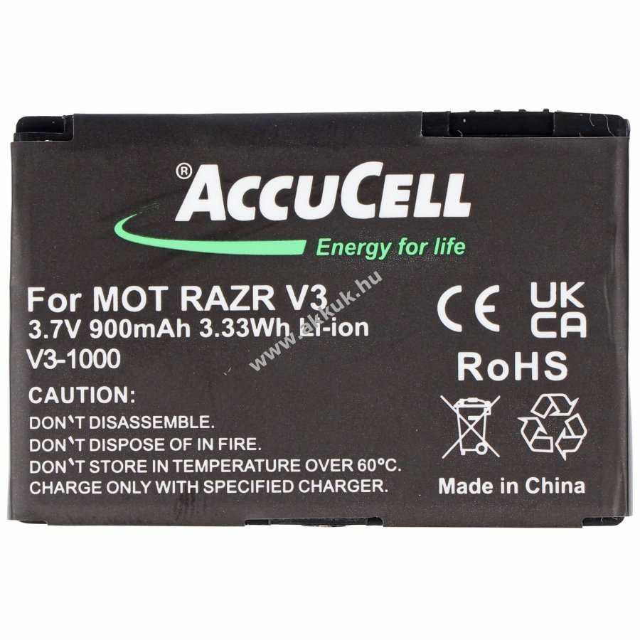 3.7V 900mAh/3.33Wh Li-Ion 49.7mm x 33.4mm x 5.4mm 18 gr. AccuCell Szavatosság (további részletek)