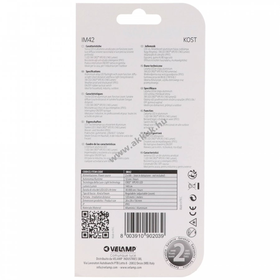Velamp KOST taktikai zseblámpa CREE XPE-R3 LED 140 lumen