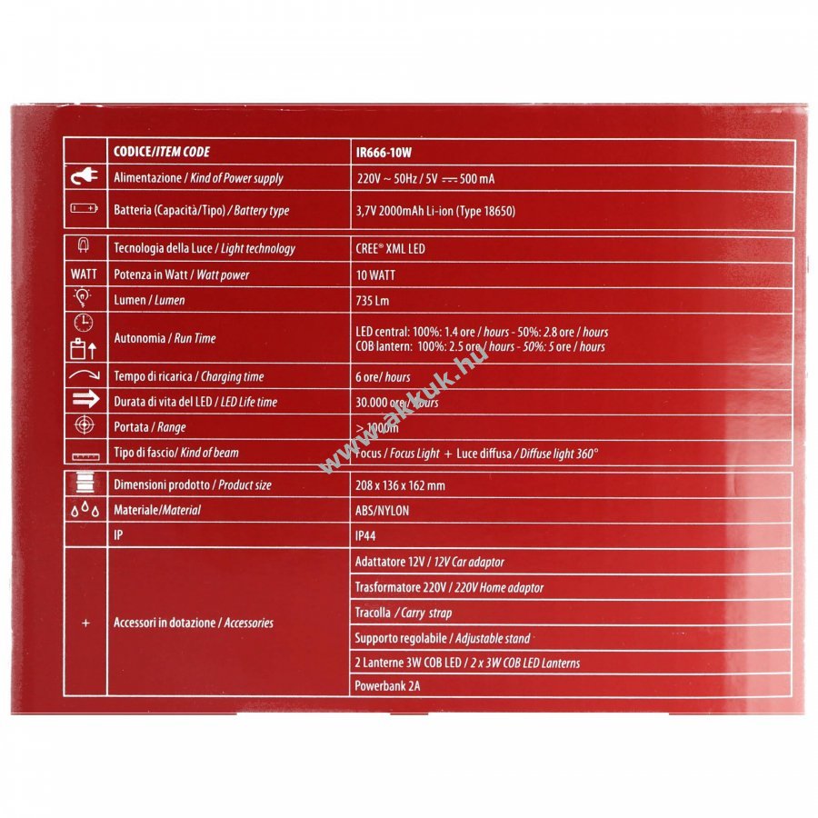 3.7V 2000mAh Li-ion 144mm x 208mm x 162mm 900 gr. AccuCell 1 év jótállás (további részletek)