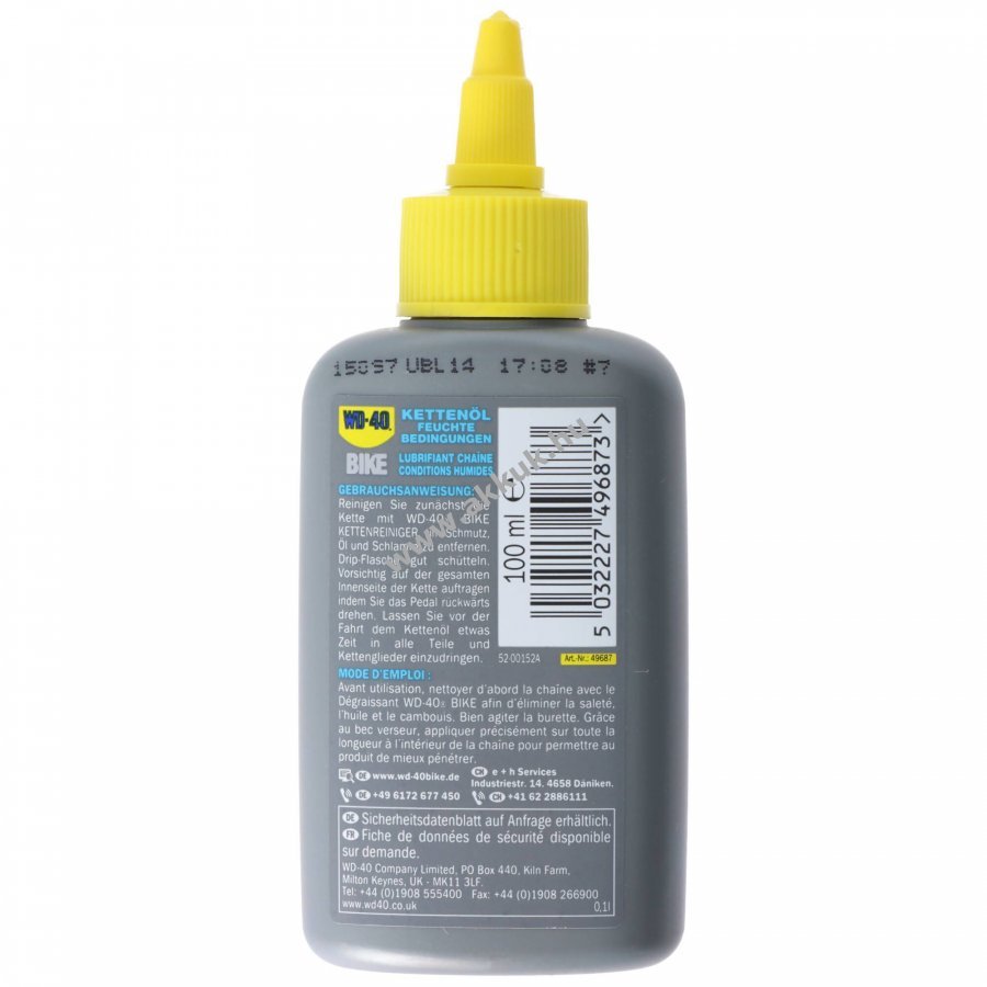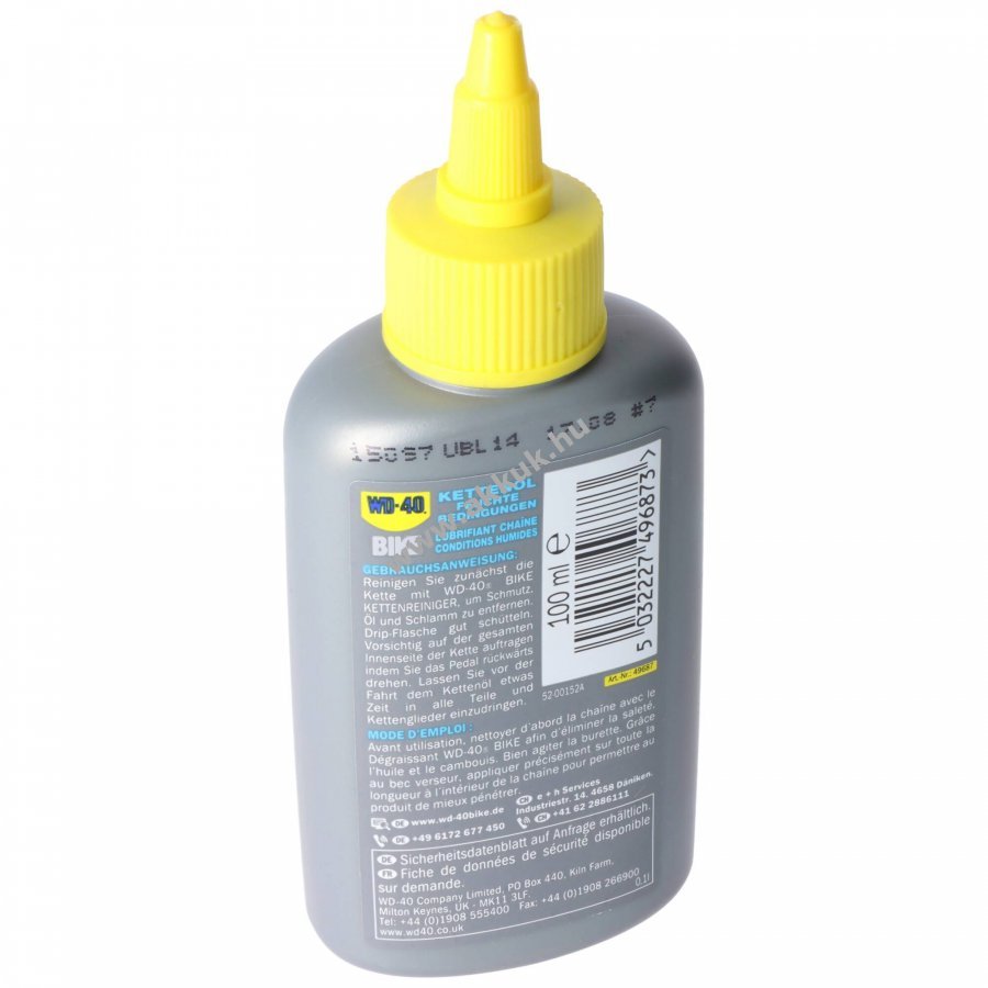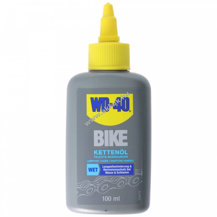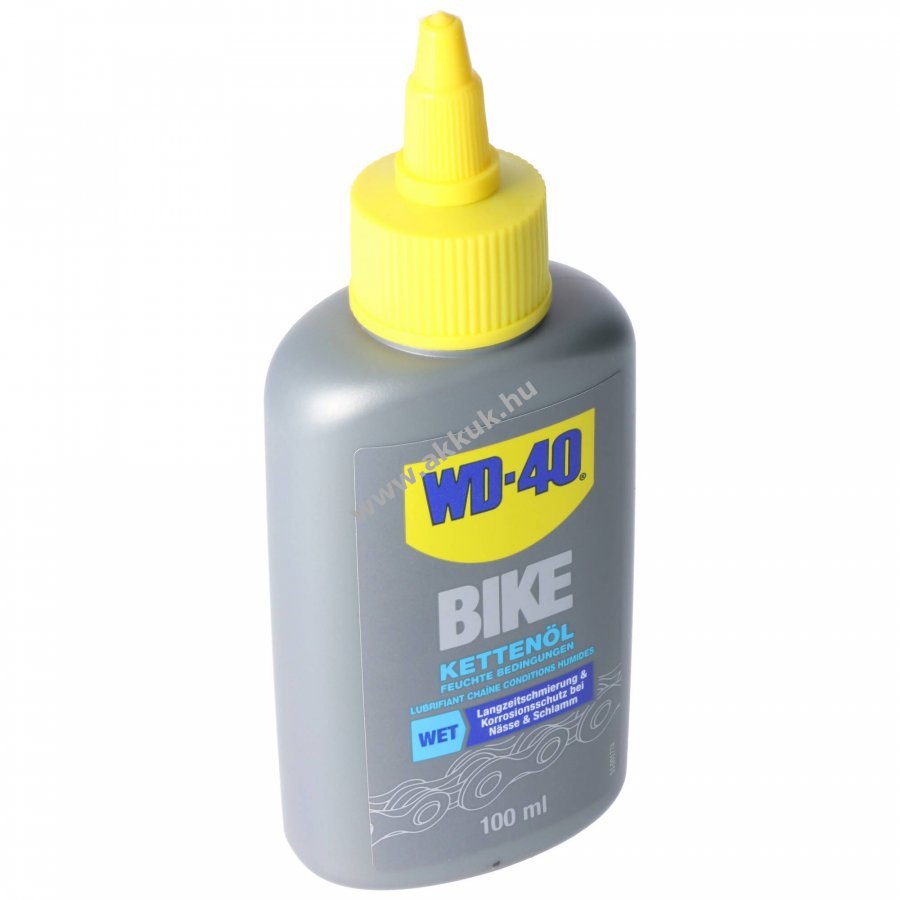 WD-40 BIKE WET lánc olaj kifejezetten nedves és sáros körülményekre készült formula, amely mélyen behatol a láncszemek közé és tartós kenést biztosít, csökkenti a súrlódást és védi a láncot a rozsdától.