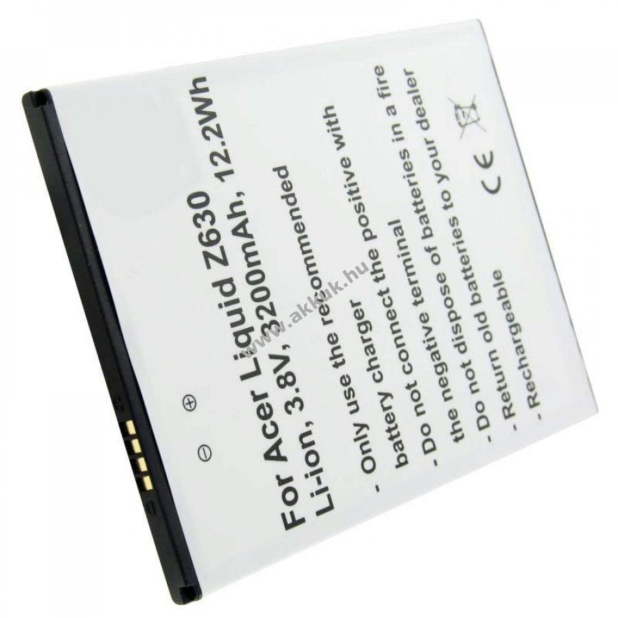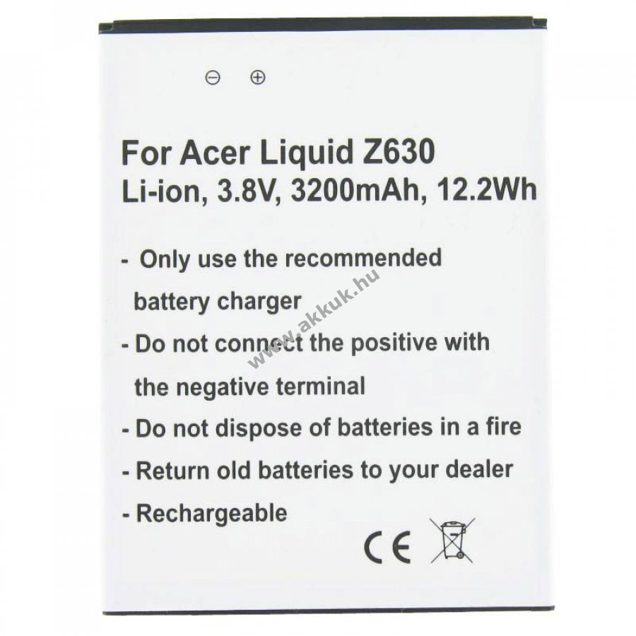 Ez a nem eredeti, helyettesítő Li-Ion akkumulátor pontosan illeszkedik az Acer Liquid Z630 készülékéhez (BAT-T11, KT.0010S.018) és alkalmas pótló- vagy tartalékakkuként.