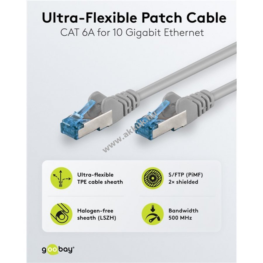 Ultrarugalmas CAT 6A patchkábel puha TPE külső borítással a könnyű kezelhetőségért és kiváló tapintásért. Alkalmas otthoni irodai, szerver szekrény és streaming használatra.