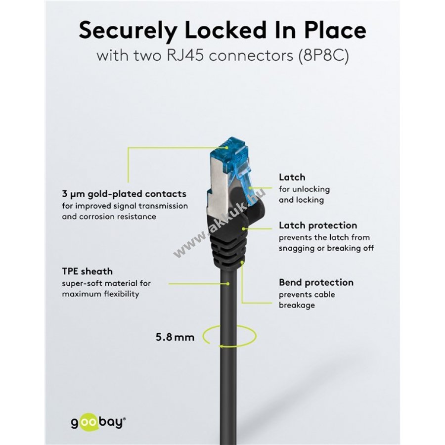 Kettős árnyékolású LAN kábel 2x RJ45 csatlakozóval hálózati eszközök összekapcsolásához otthon, irodában vagy szerver szekrényben.