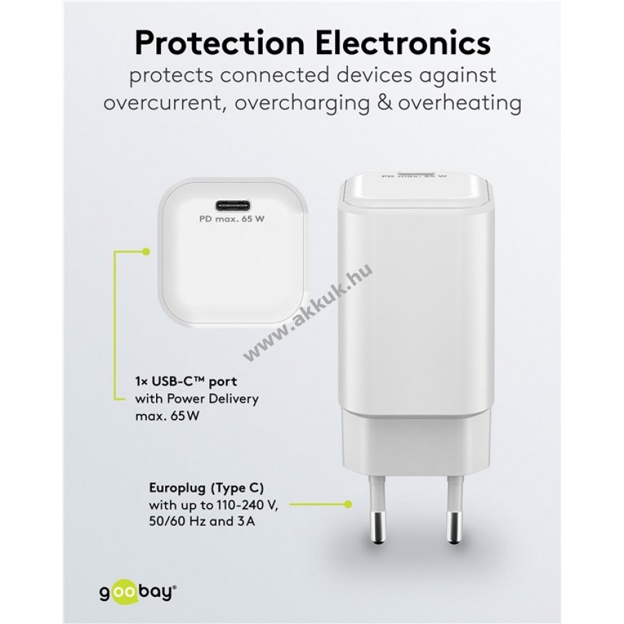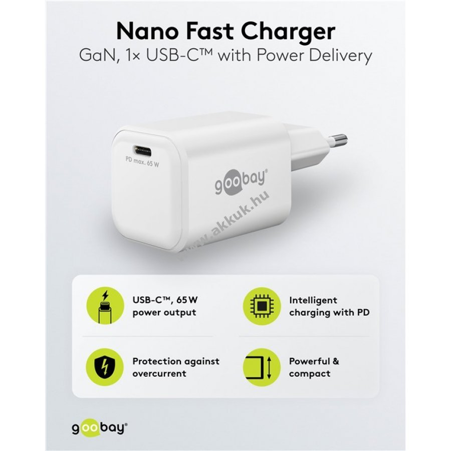Kompakt kialakítás és magas teljesítmény egyetlen töltőben 65 W-tal és USB-C Power Delivery csatlakozóval. Gyors és megbízható töltést biztosít okostelefonoknak, Bluetooth fejhallgatóknak és laptopoknak egyaránt. GaN technológiás félvezetőknek köszönhetően kisebb és hatékonyabb, mint a hagyományos töltők. Ideális otthoni és utazási használatra. Kompatibilis Apple iPhone, Samsung, Xiaomi, LG, Huawei okostelefonokkal, Apple iPad táblagépekkel és Acer, HP, Fujitsu, Razer notebookokkal.