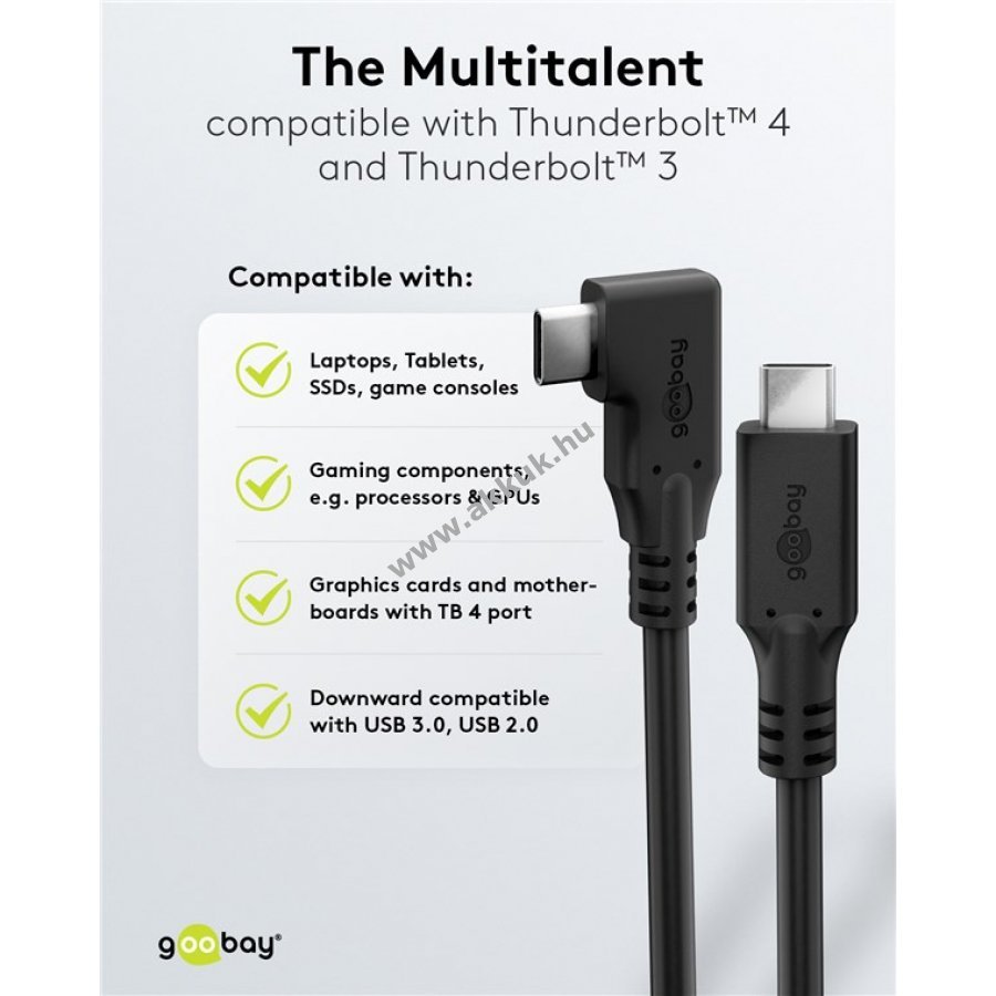 Nagyon gyors adatátvitel akár 5 Gbit/s sebességgel és hatékony töltés Power Delivery technológiával. 90 fokos csatlakozója miatt a kábel szorosan illeszkedik az eszközhöz, így csökkenti a kábel törésének kockázatát. 60 W teljesítménnyel ideális laptopok, tabletek, SSD-k és játékkonzolok töltéséhez. Kompatibilis Thunderbolt™ 3 és 4 portokkal valamint AMD AM5 foglalattal. Használható Lenovo, HP, Dell, Apple MacBook és iPad készülékekkel.