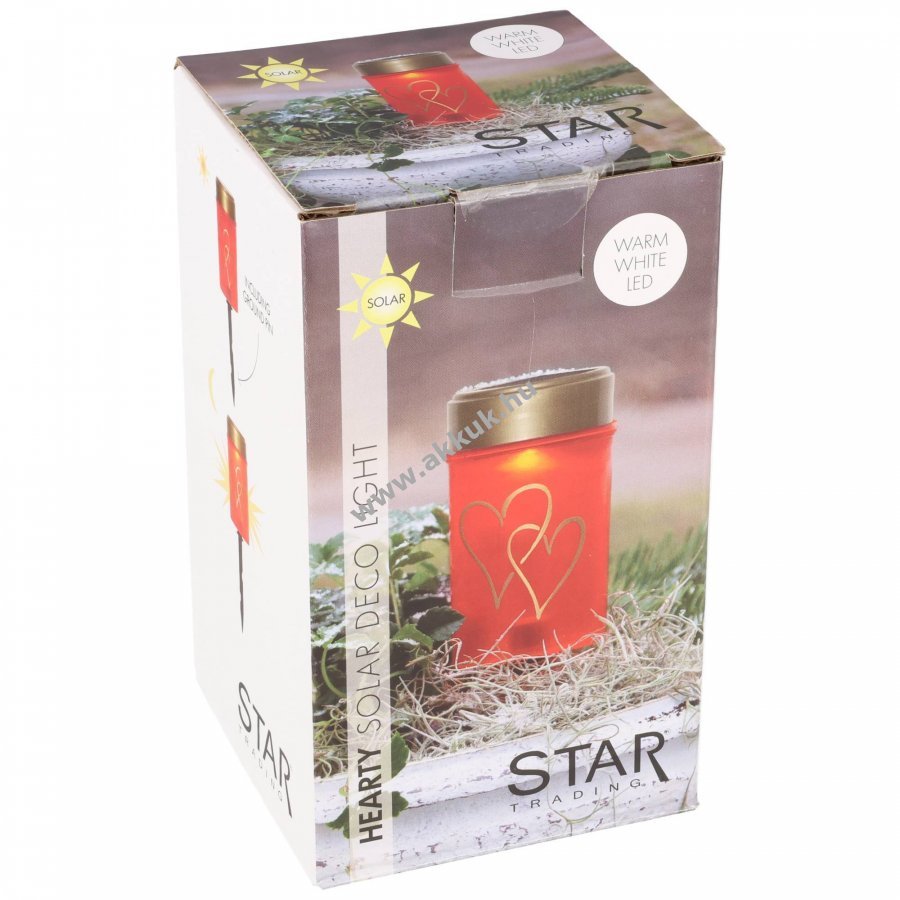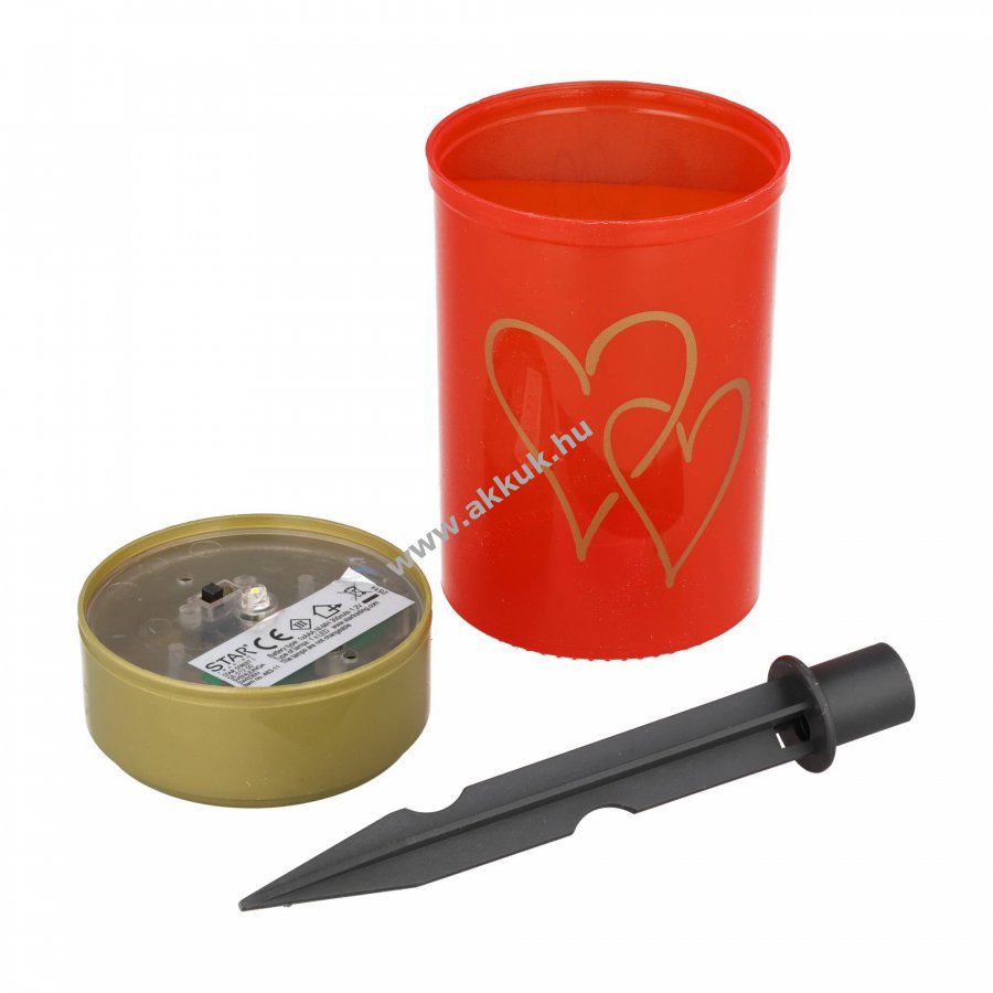 Napelemes LED sírjelző Hearty piros kivitelben, beépített akkuval és mellékelt földtüskével. Melegfehér, lánghatású fényt ad, automatikusan kapcsol sötétedéskor.