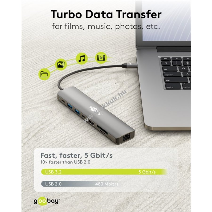 - másik USB-C port 480 Mbit/s adatátvitelt kínál