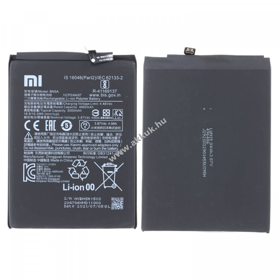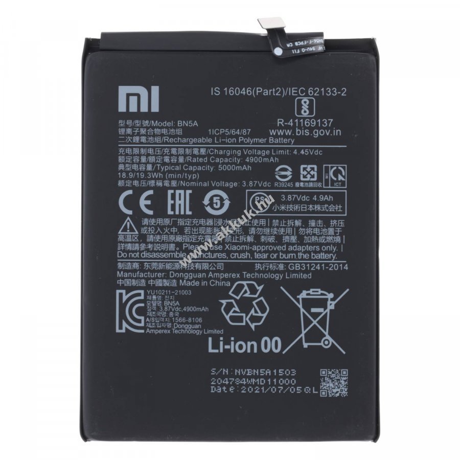 3.87V 5000mAh/19.3Wh Li-Ion 84mm x 63mm x 4mm 65 gr. Original Szavatosság (további részletek)