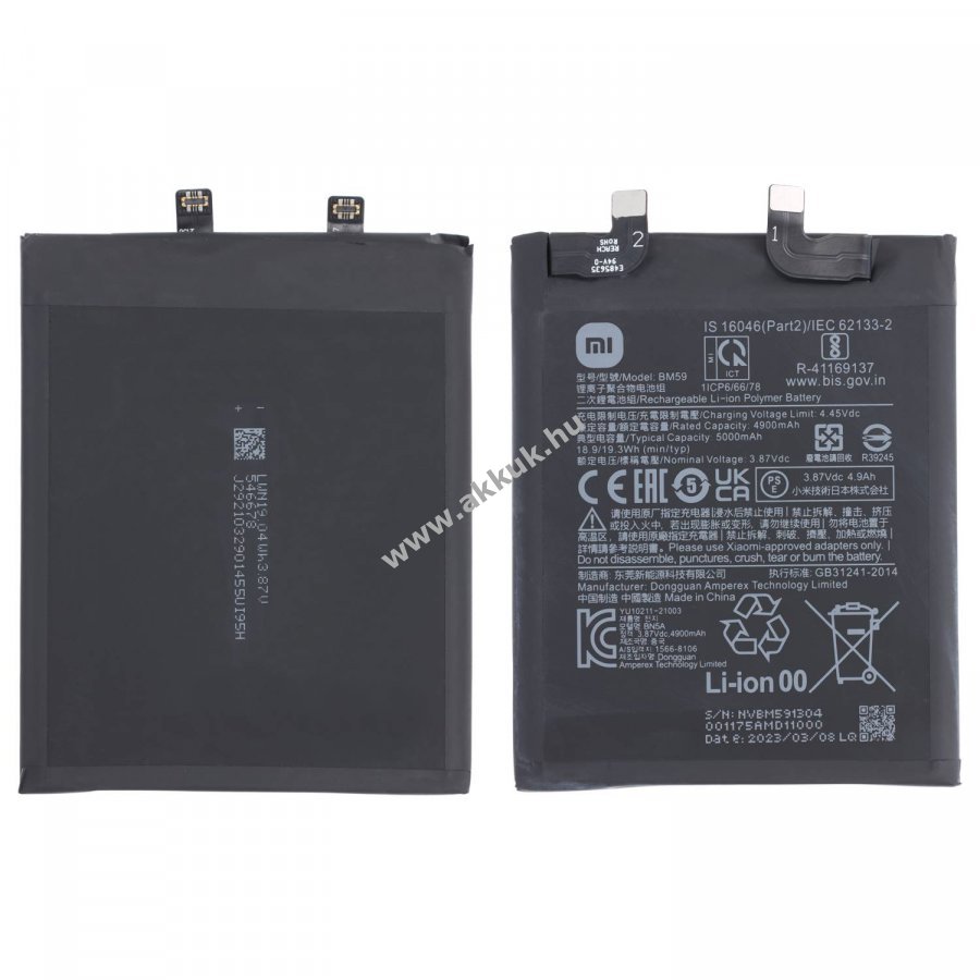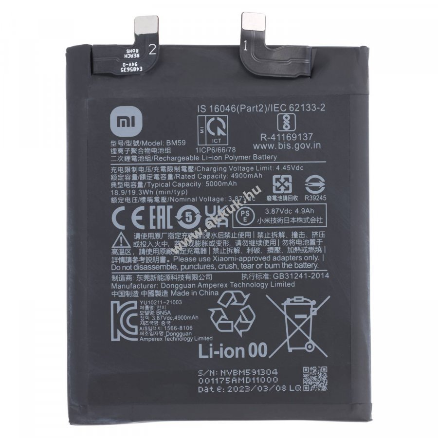 3.87V 5000mAh/19.3Wh 100mm x 160mm x 5mm x 6mm 60 gr. Original 1 év jótállás (további részletek)