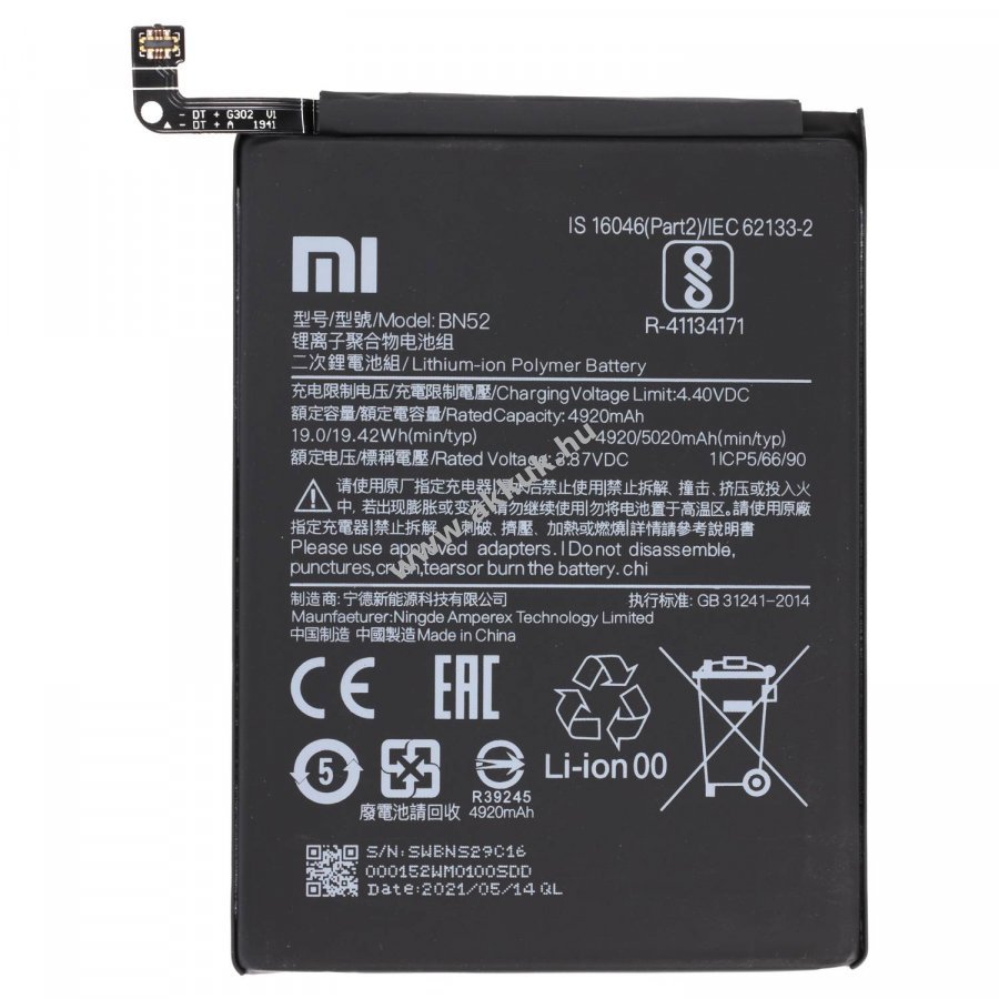 3.85V 4920mAh Li-Ion 120mm x 40mm x 6mm 56 gr. Original 1 év jótállás (további részletek)
