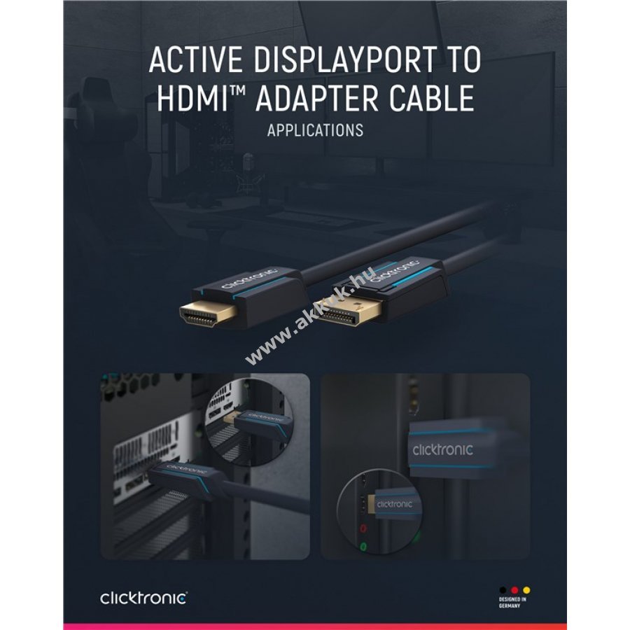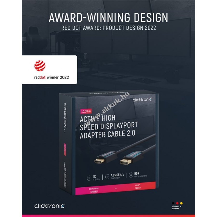 A Clicktronic kábelek hosszú élettartamra és stabilitásra lettek tervezve 10 év garanciával. A háromrészes csatlakozó PVC és ABS elemekből áll, ami védi a kábelt a sérülésektől. A nikkelezetttt érintkezők és tiszta réz vezetők biztosítják a kiváló hang- és képátvitelt a tökéletes otthoni mozi és játékélmény érdekében.