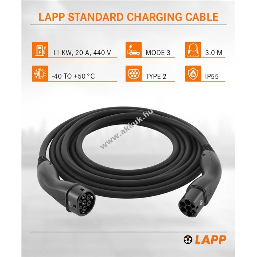 A LAPP MOBILITY Typ 2 töltőkábel egyszerű és gyors töltést biztosít plug-in hibrid és tisztán elektromos járművekhez akár 11 kW teljesítménnyel.