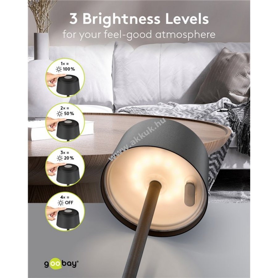 Érintésvezérlés három fényerőszinttel és kikapcsolással