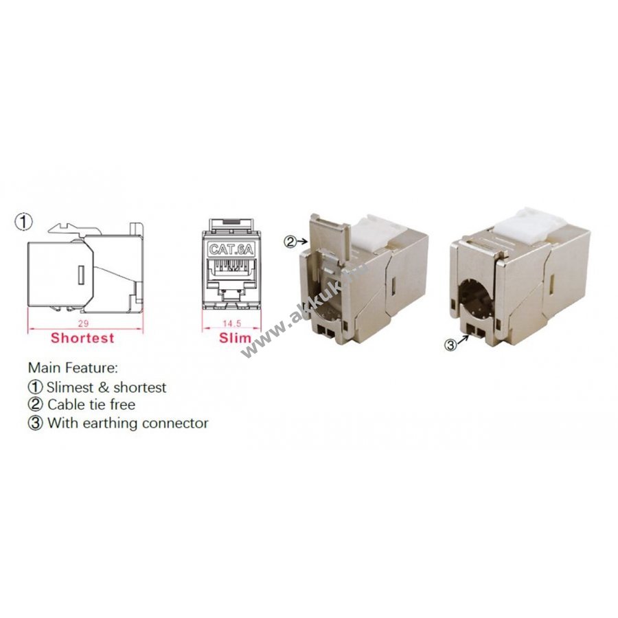 CAT-6A Slim kialakítás 14,5 mm szélességgel helytakarékos beépítéshez patchpanelben.