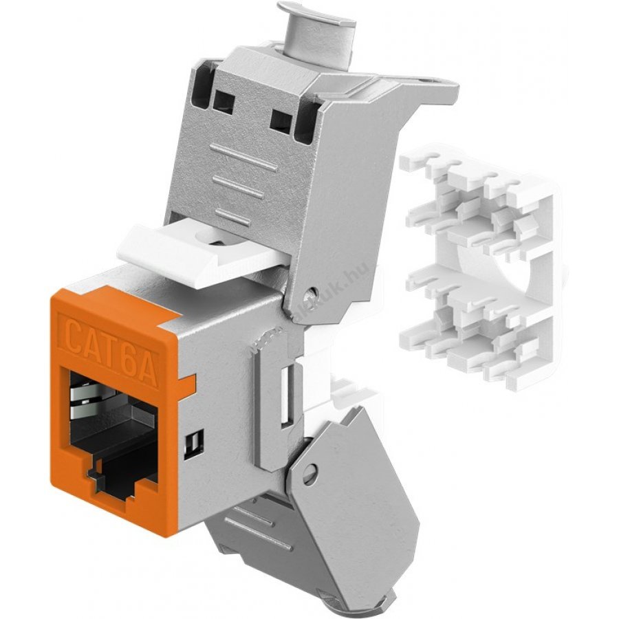 Moduláris Keystone csatlakozó rendszer gyors és rugalmas telepítéshez üres házakba, hálózati aljzatokba vagy patchpanelekbe. Kompatibilis RJ45, HDMI™, USB és Sat antenna modulokhoz szabványos portmérettel 14,9 x 17,0 mm. Egyszerű, szerszámmentes Snap-in rögzítés a gyors szereléshez. Slim kialakítás 14,5 mm szélességgel helytakarékos elhelyezést biztosít patchpanelben. Színes előlap segíti a csatlakozások azonosítását strukturált kábelezésben. STP árnyékolású RJ45 aljzat masszív cinköntvény házzal a megbízható hálózati jelátvitelért. Támogatja a Power over Ethernet (PoE+) IEEE 802.3at szabvány szerint és 10 Gigabit Ethernetet 500 MHz-en. Ideális patchpanel vagy kapcsolószekrény kábelezéshez és épületstruktúrákhoz. Csak 0,45-0,65 mm átmérőjű tömör vezetékhez alkalmas, sodrott vezetékhez nem. Hátsó RJ45 csatlakozó TIA 568A/B színkódolt.