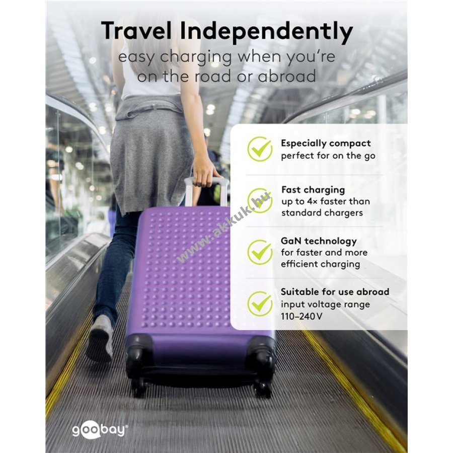 Gyors töltés Power Delivery technológiával mobiltelefonokhoz, táblagépekhez, fejhallgatókhoz, okosórákhoz és kamerákhoz. Kompatibilis a Samsung, Apple és más ismert márkák termékeivel. Kompakt és könnyű kialakítás széles bemeneti feszültségtartománnyal a maximális rugalmasságért otthon, útközben és külföldi utazások során.