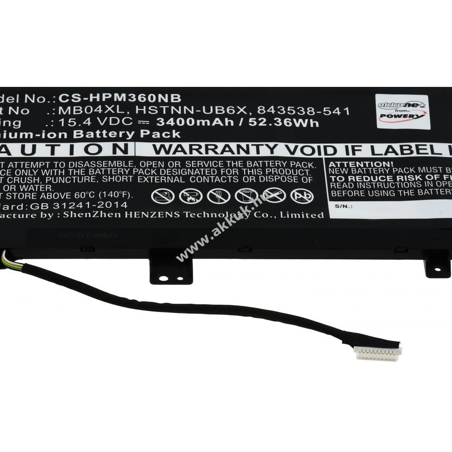 15,4V 3400mAh/52,4Wh Li-Ion fekete 264,90mm x 113,70mm x 5,80mm 350 gr. Powery 1 év jótállás (további részletek) 4062438239021