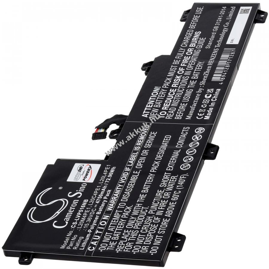 15,36V 4750mAh/73Wh Li-Polymer fekete 322mm x 119,5mm x 6mm 300 gr. Powery 1 év jótállás (további részletek) 4062438700712