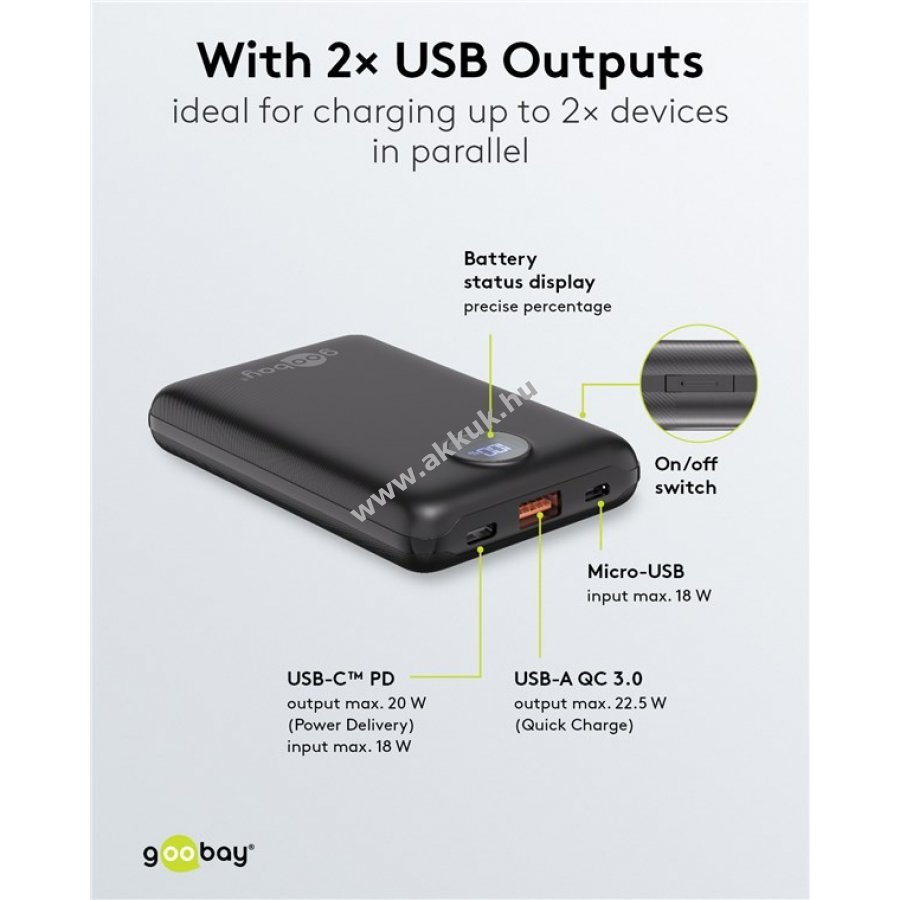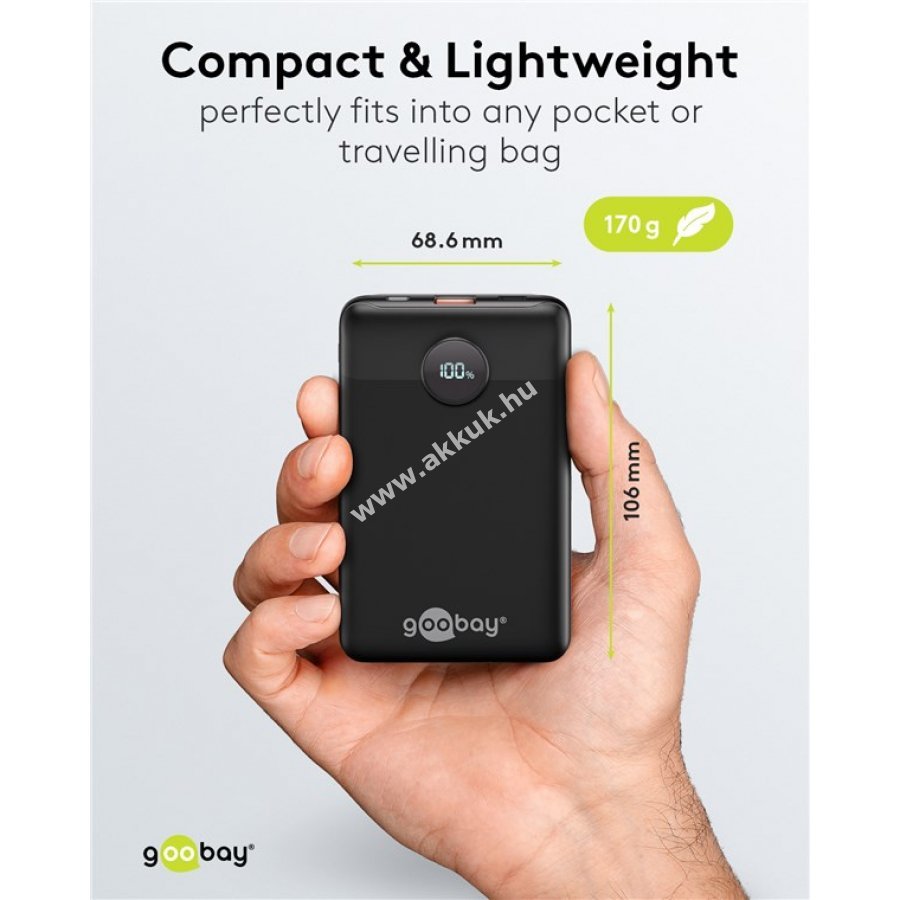 5V 10000 mAh Li-ion fekete 106mm x 69mm x 16mm 170 gr. Goobay Szavatosság (további részletek) 4040849658686
