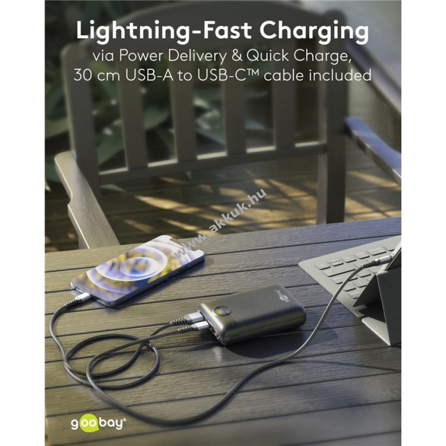Könnyű és ultralapos powerbank hosszabb utazásokhoz. Több eszköz többszöri teljes feltöltésére alkalmas, akár két készülék párhuzamos töltésével. Kompakt mérete miatt minden táskában elfér és ideális útközben. 3 eszköz egyszerre tölthető 2 USB-A és 1 USB-C porton, például okostelefon, tablet vagy vezeték nélküli fülhallgató. Quick Charge és Power Delivery technológiával akár 22,5W teljesítménnyel gyors töltést biztosít. Csúszásmentes felület védi a készüléket és a csatlakoztatott eszközöket. Digitális LED kijelző mutatja a pontos töltöttségi szintet. Töltése USB-C vagy Micro-USB bemeneten keresztül történik, 0,3 m-es USB-A - USB-C kábellel. Univerzális USB csatlakozók kompatibilisek több gyártó készülékeivel, például Samsung Galaxy, Xiaomi, Lenovo, Huawei, Apple iPhone és iPad adapterrel.
