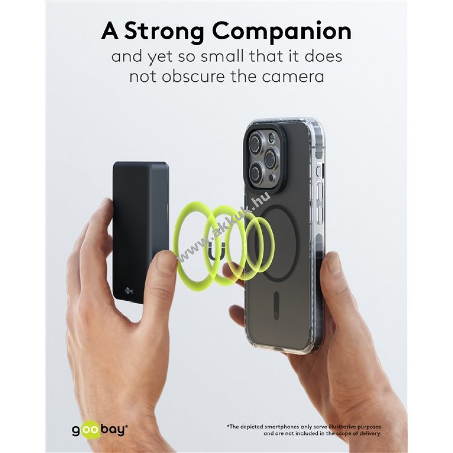 Kompakt mágneses powerbank amely a telefon hátoldalán tapad és nem takarja el a kamerát